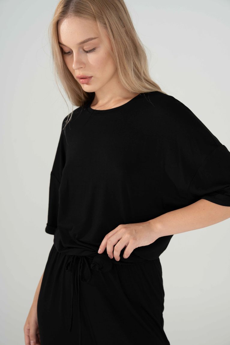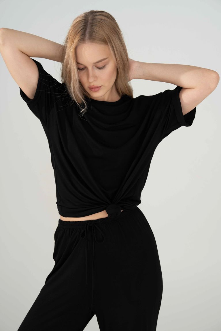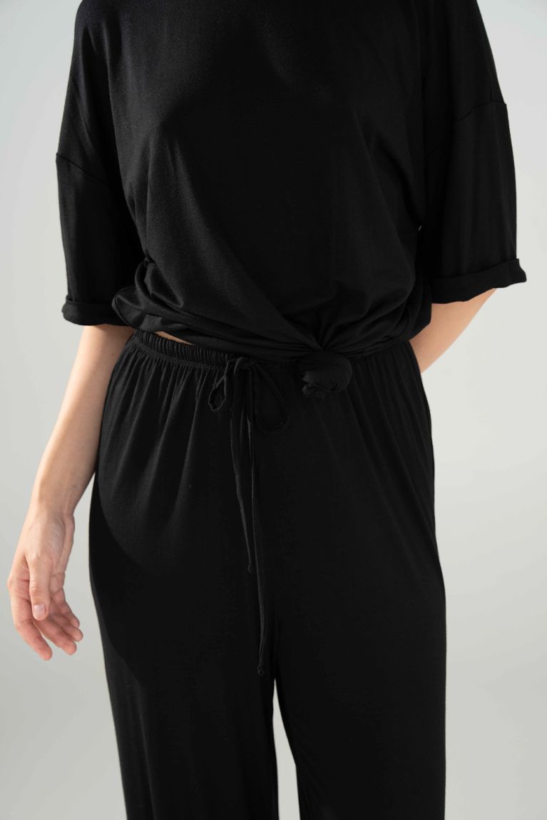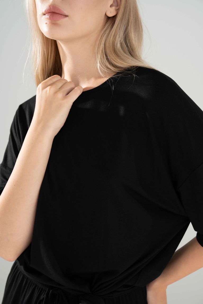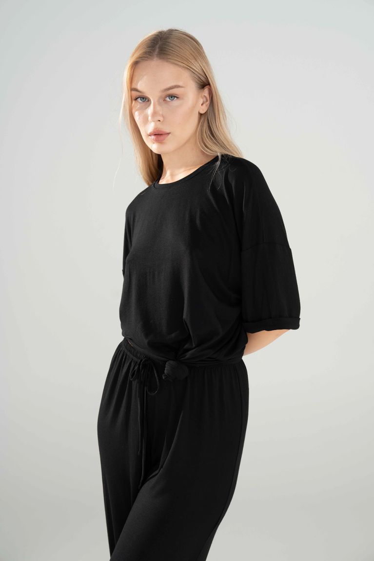 Найприємніша до тіла футболка вільного крою. Ніжна віскоза гарно лягає і чудово дихає. Носи зі спортивним низом або збирай затишний домашній чи пляжний комплект.