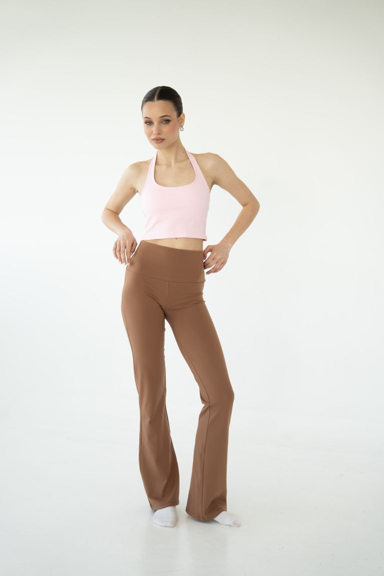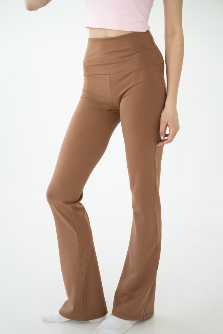 Розкльошені штани з ультрам'якого біфлексу. Тканина чудово тягнеться, не створюючи жодного тиску. Візуально подовжують силует і підходять для найбільш розслаблених практик.