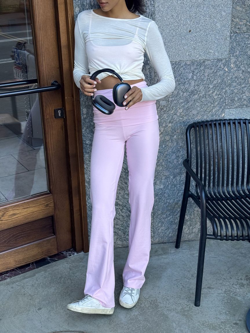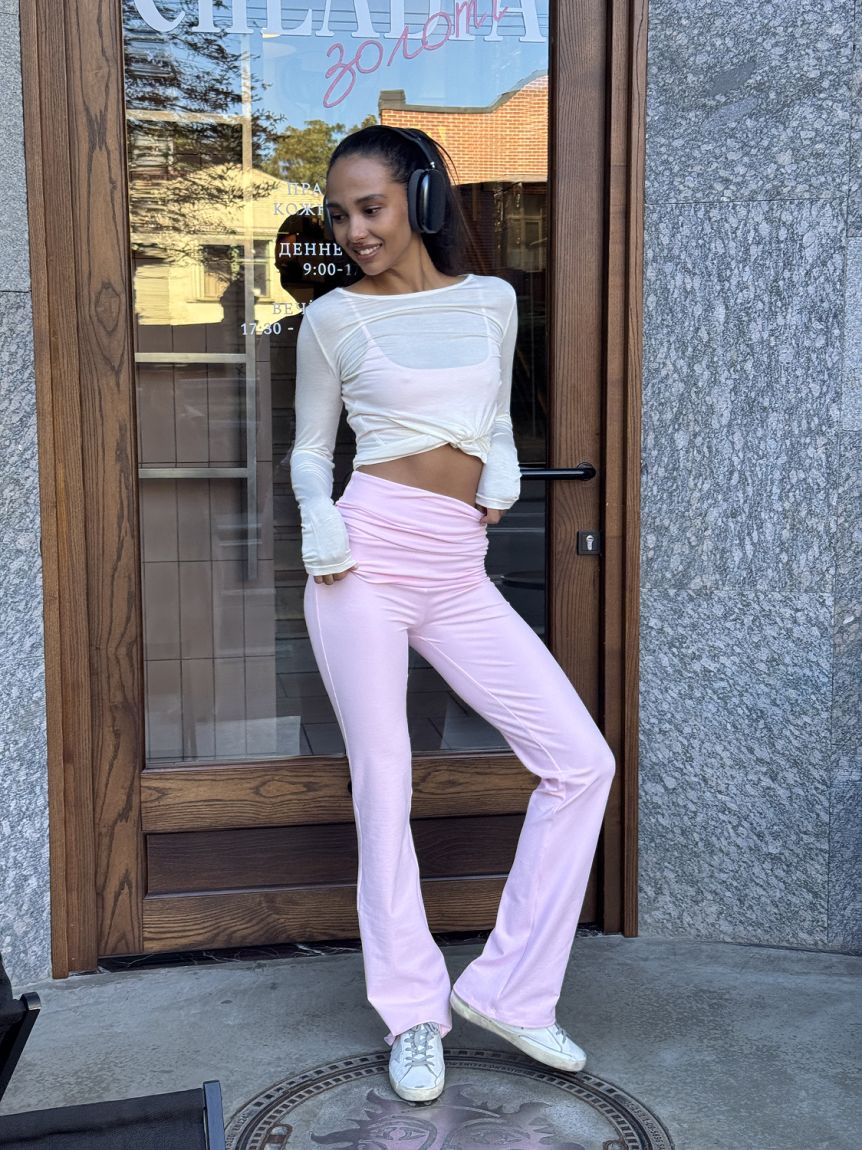 Розкльошені штани з ультрам'якого біфлексу. Тканина чудово тягнеться, не створюючи жодного тиску. Візуально подовжують силует і підходять для найбільш розслаблених практик.