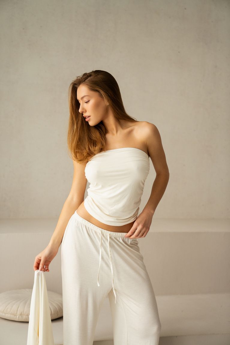 Неймовірно м'який короткий топ зі струмливої віскози. Невагомий на тілі. Ідеальний вибір для розслаблених домашніх вихідних або спекотних днів.