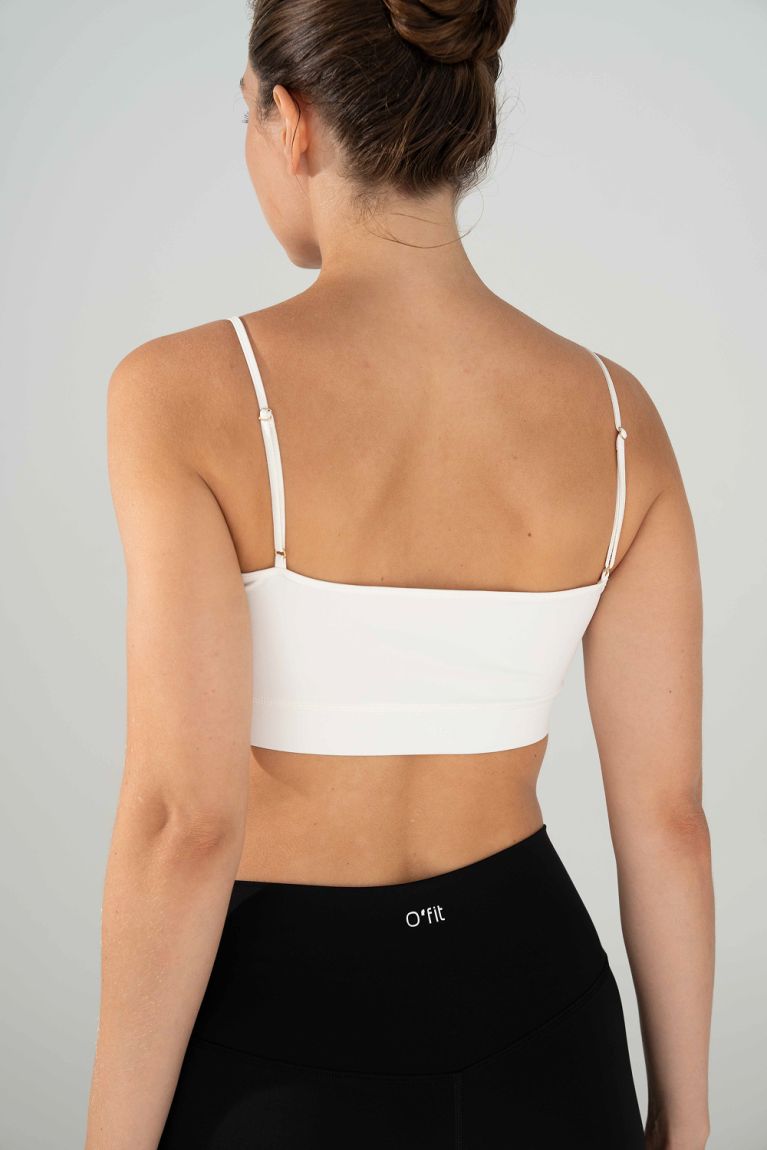 Базовий короткий топ для ідеальної підтримки. Тонкі бретелі легко регулюються під твій комфорт. Тканина щільна, не просвічує і відчувається як друга шкіра. Міксуй з легінсами чи шортами O'fit.